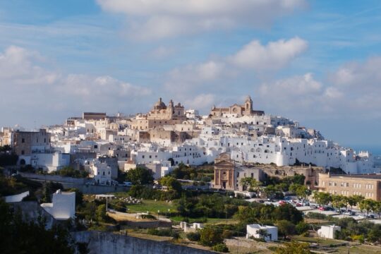 Bicycle vineyards, olive groves, and whitewashed villages in the Puglia and Basilicata region of south...